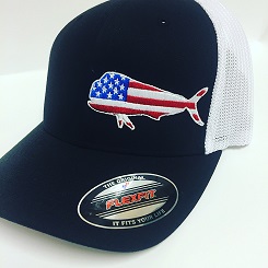 100% Original Flex Fit with meshback. Blue structured front with MahiMerica logo with USA colors. One size fits all. Shipping only $5.00!